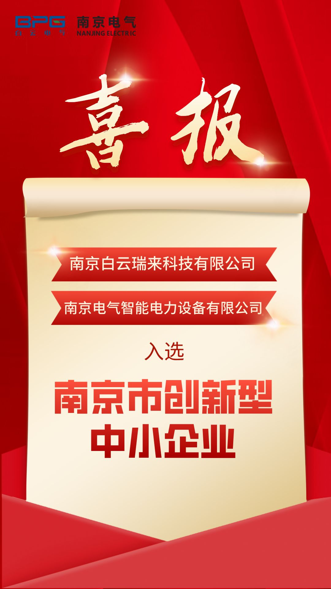 9月21日,,,,南京市人民政府增进中小企业生长事情向导小组办公室宣布了2022年度南京市立异型中小企业名单。。。。jxf吉祥坊下属南京白云瑞来科技有限公司和jxf吉祥坊智能电力装备有限公司名列其中,,,,双双入选。。。。